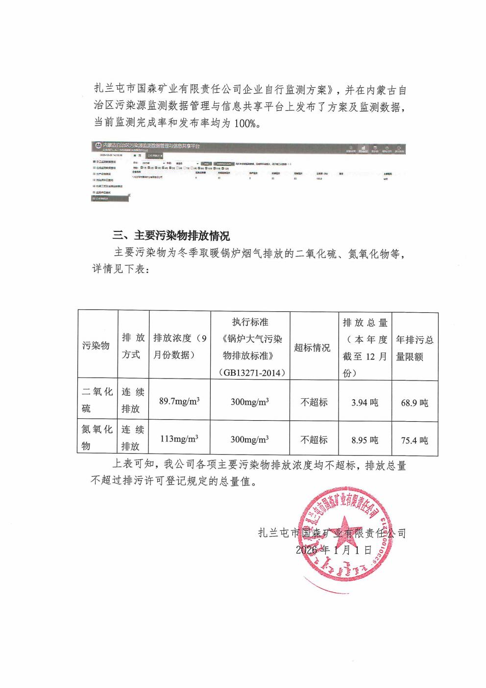 扎蘭屯市國森礦業有限責任公司 重點排污單位環境信息公示