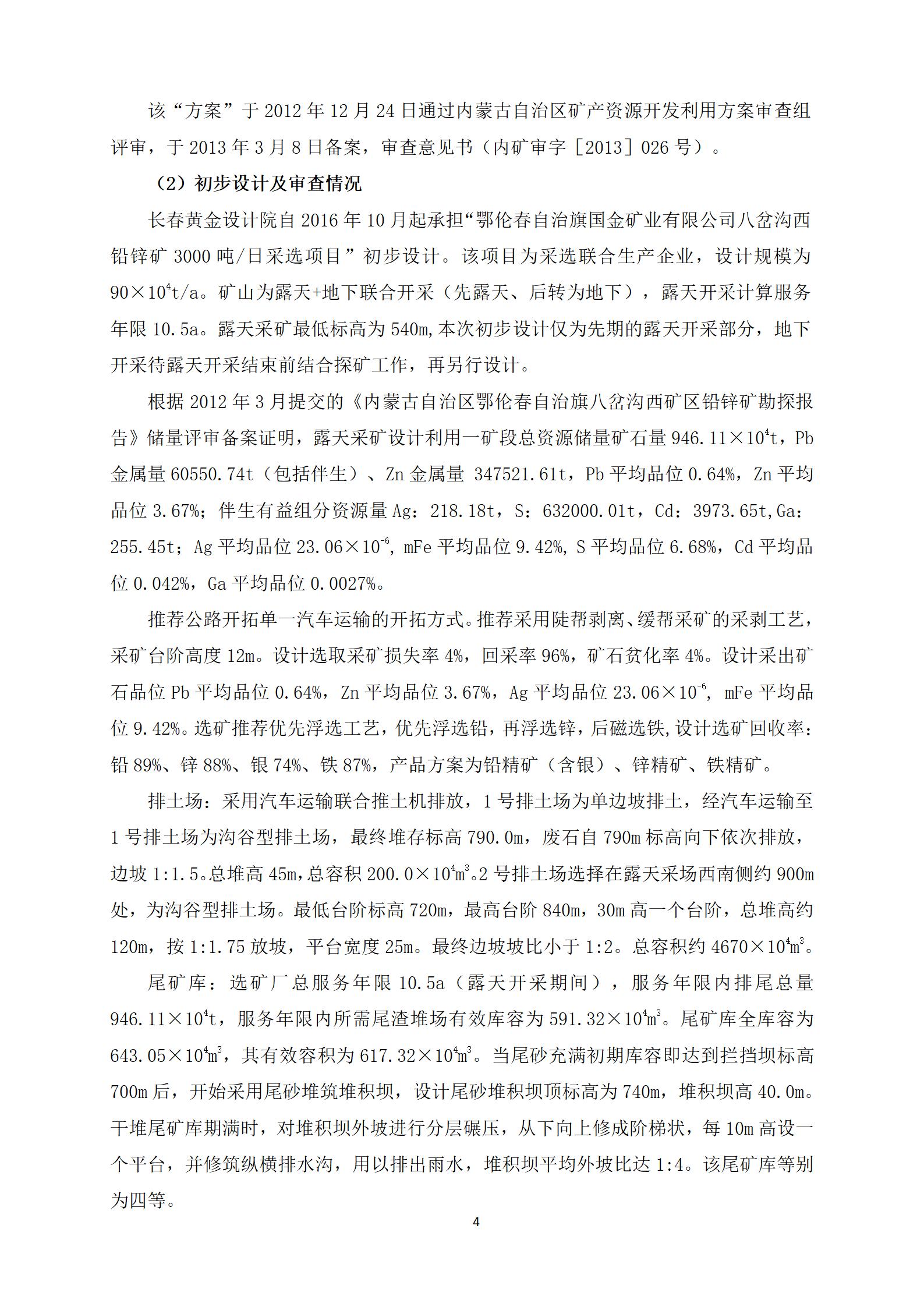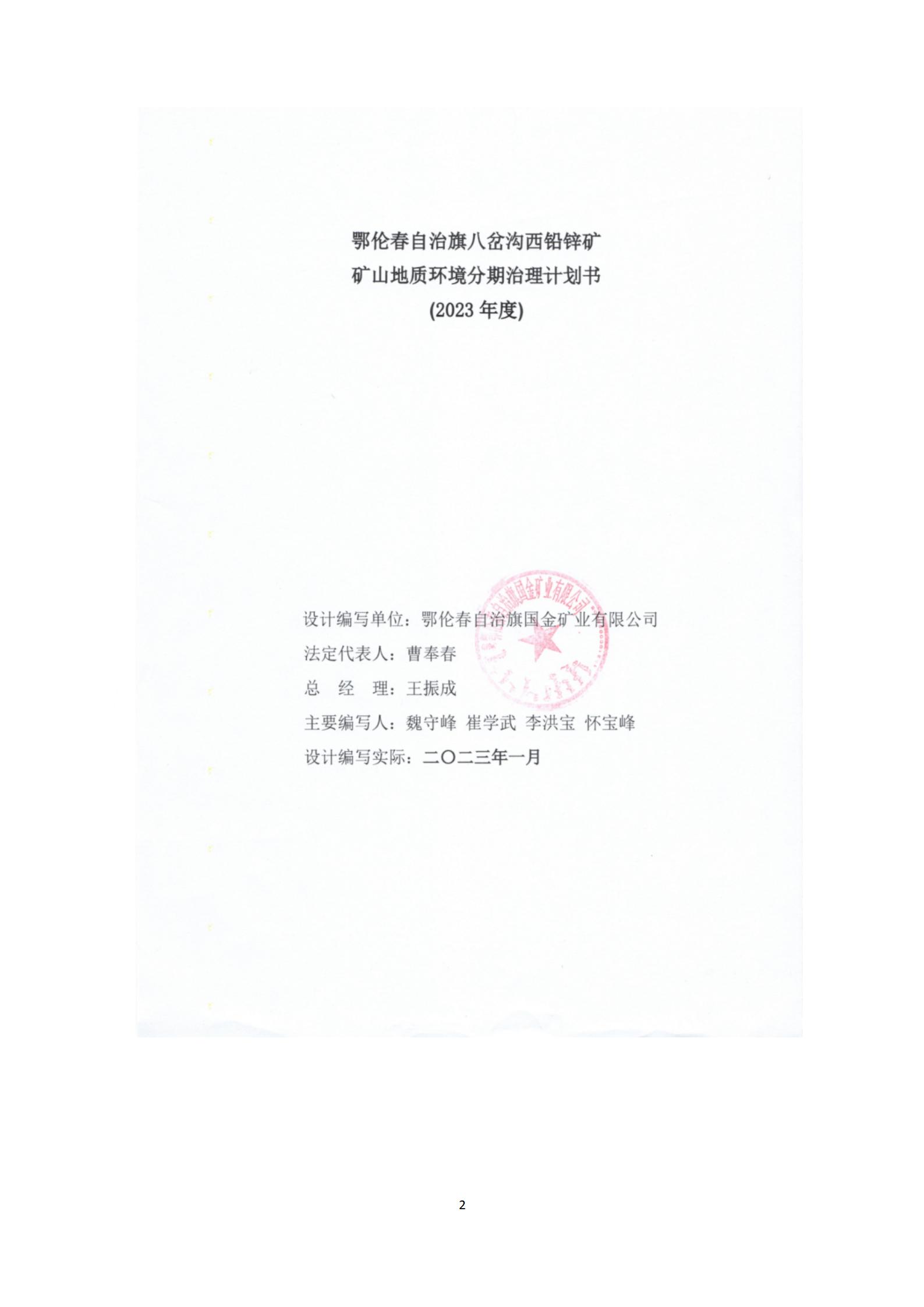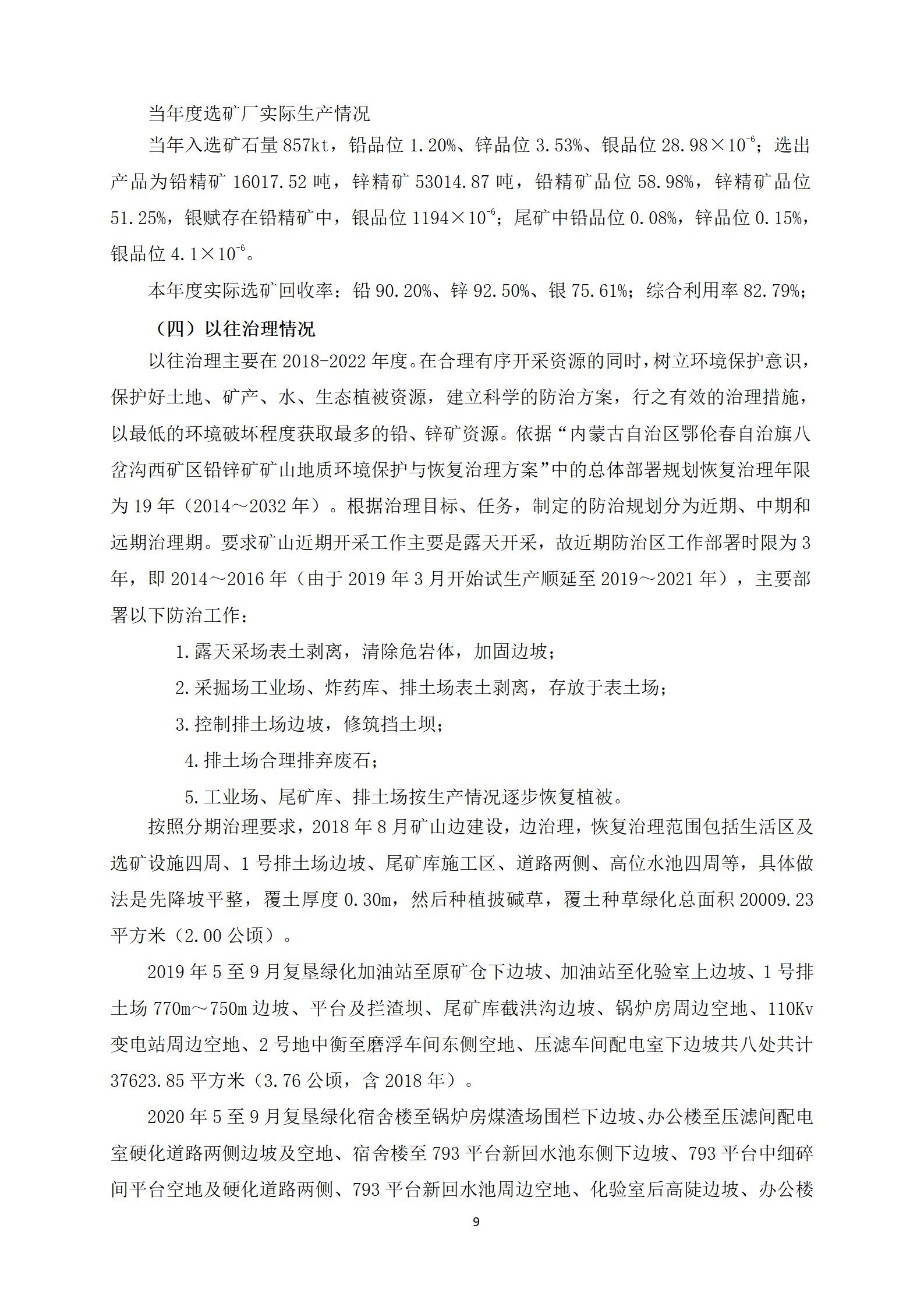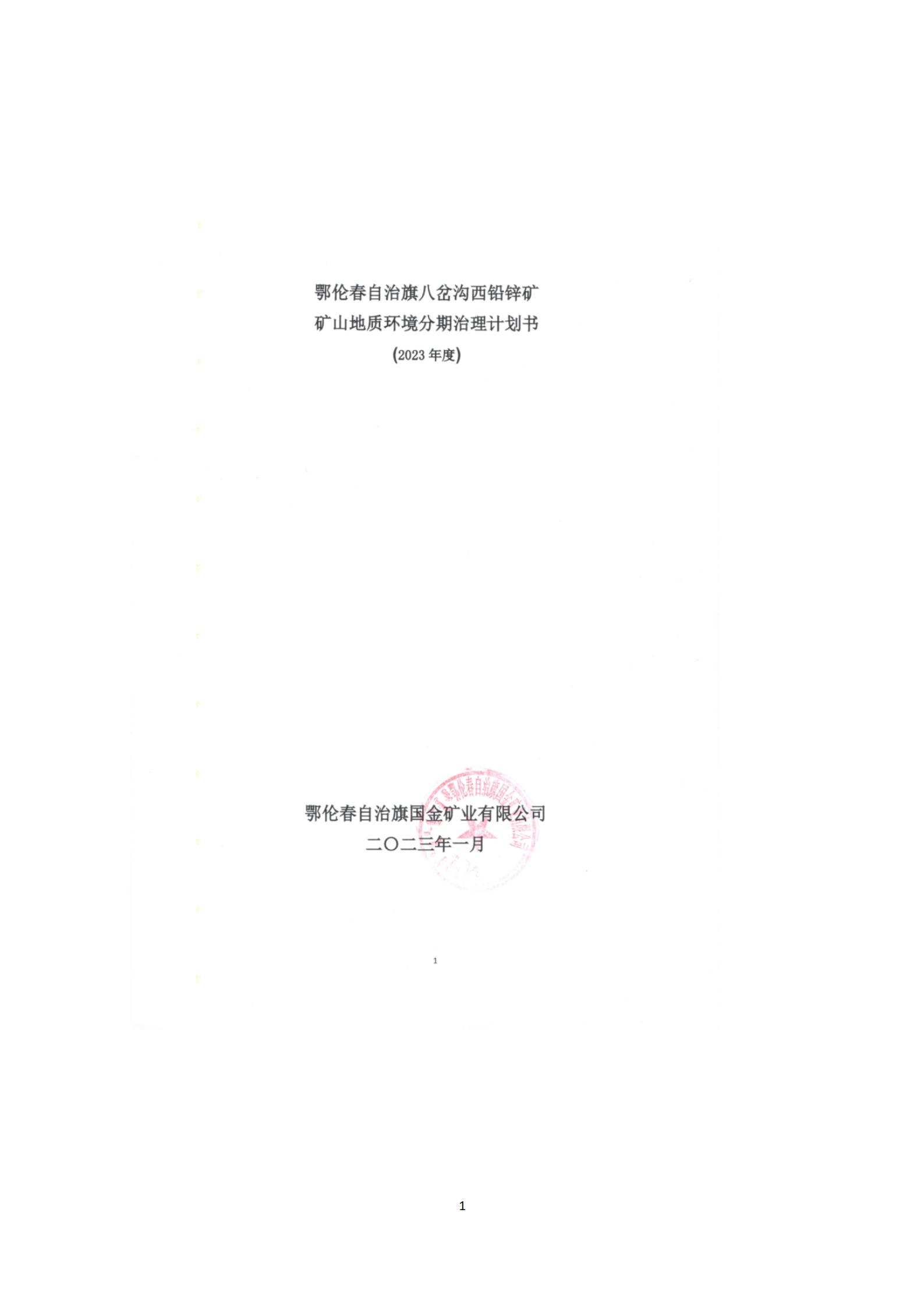 鄂倫春自治旗八岔溝西鉛鋅礦礦山環境恢復治理計劃書定稿(2023)