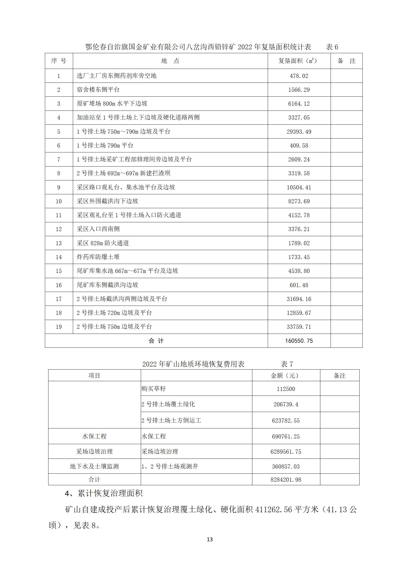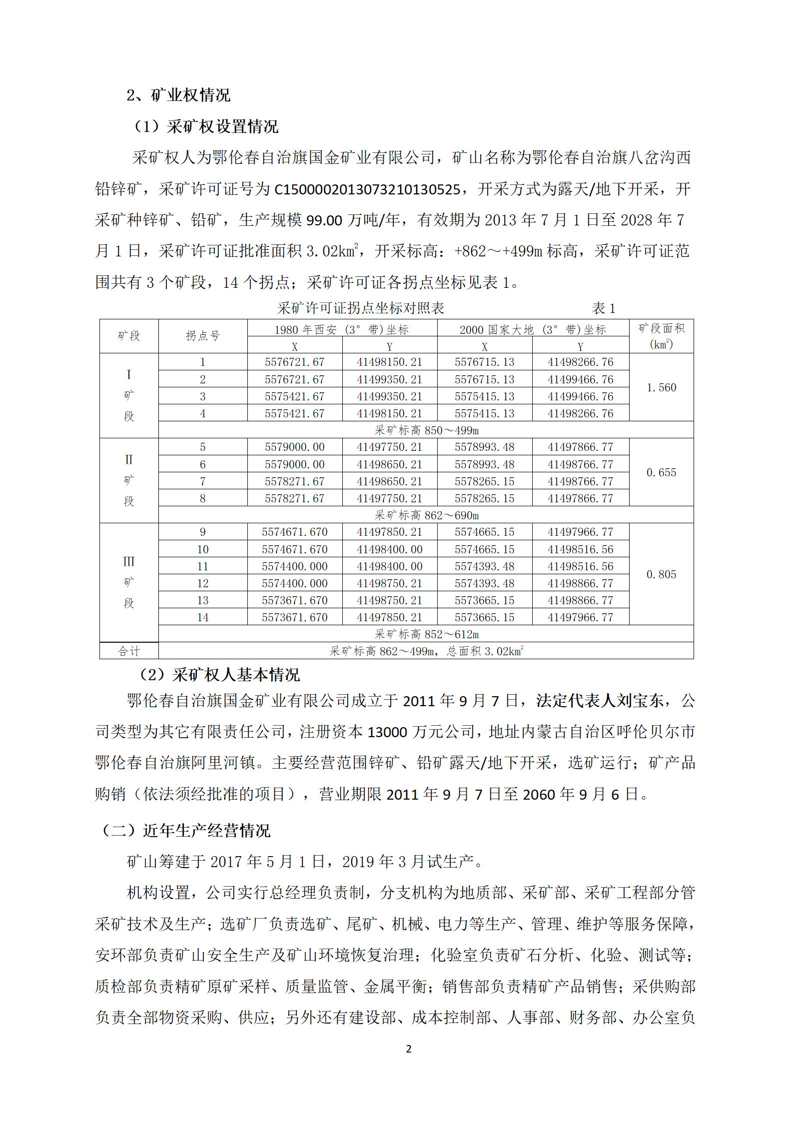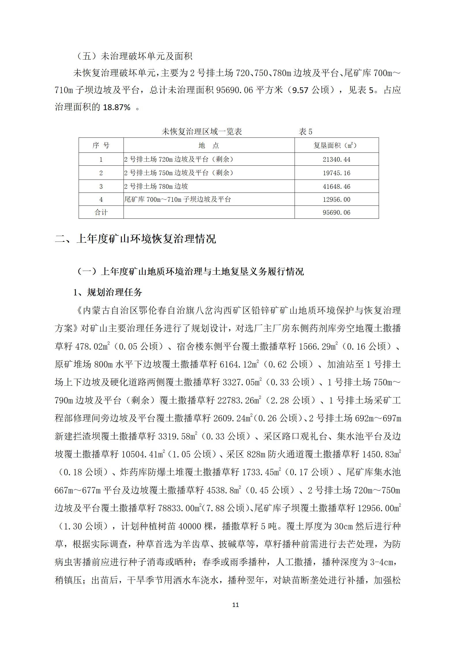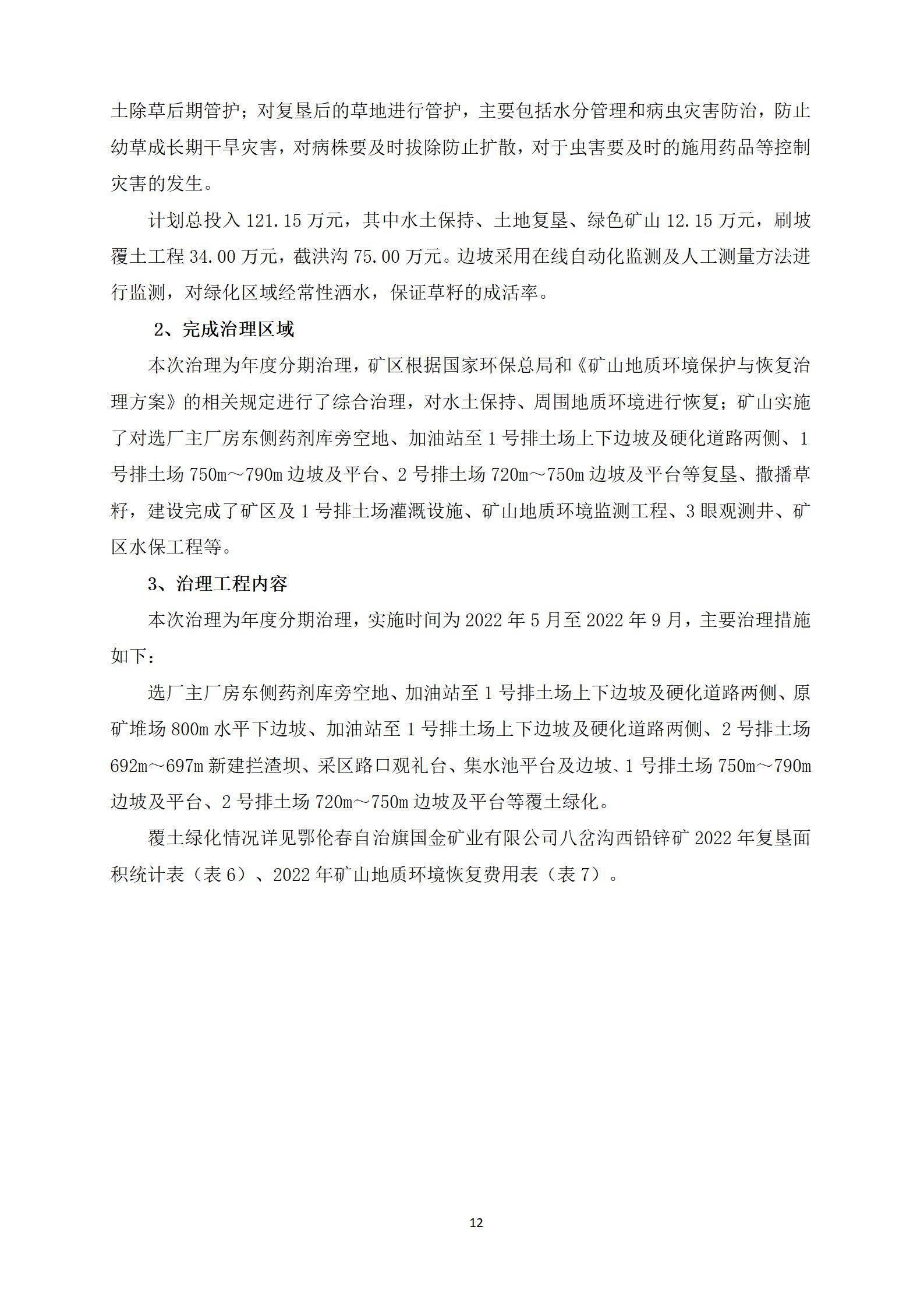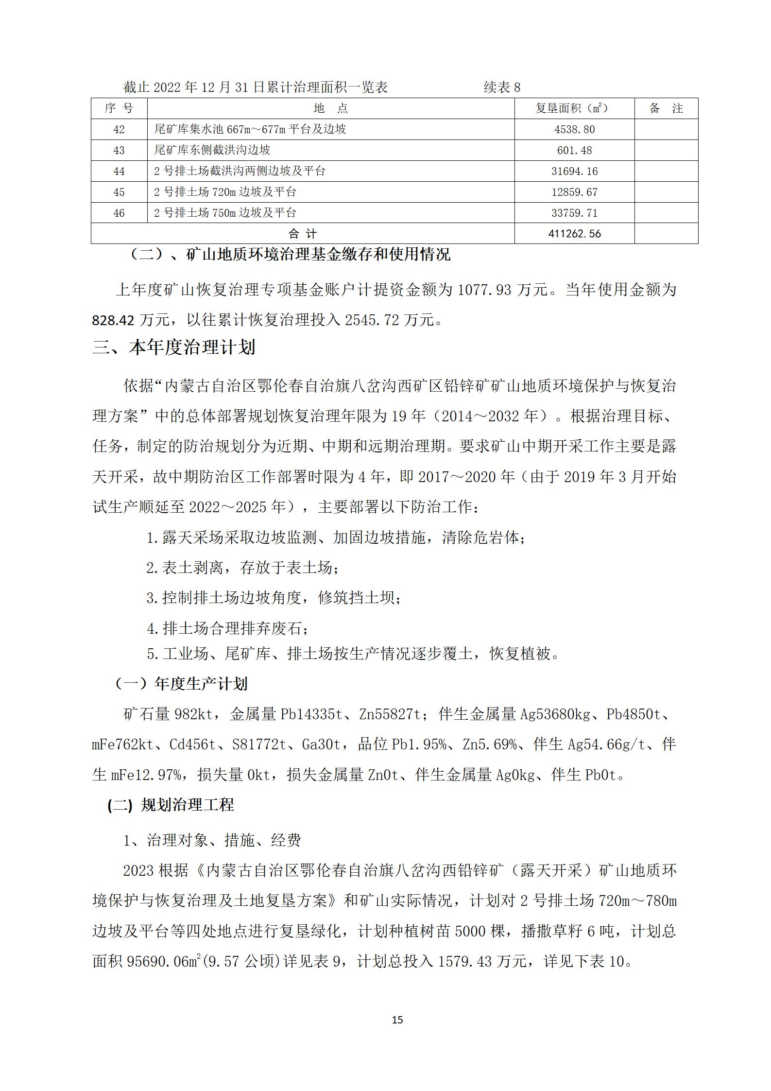 鄂倫春自治旗八岔溝西鉛鋅礦礦山環境恢復治理計劃書定稿(2023)